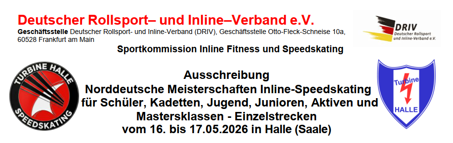 Hallo Herbert, anliegend Ausschreibung für Halle mit der Bitte, diese auf unsere Homepage zu stellen. Die zu startenden Sportler/innen sollen sich rechtzeitig melden. Vielen Dank. LG Iris NDM 26.pdf - Sommertraining BSV92 Speedskating